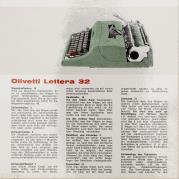 Olivetti typewriters - Wikipedia The Olivetti Lettera 32 is a portable mechanical typewriter designed by Marcello Nizzoli for Olivetti in 1963 as the successor of the popular Olivetti Lettera 22.The Lettera 32 was also very popular amongst writers, journalists and students. The typewriter is sized about 34x35x10 cm (with the carriage return lever adding about 1-2 centimeters in height), making it portable at least for the ...
